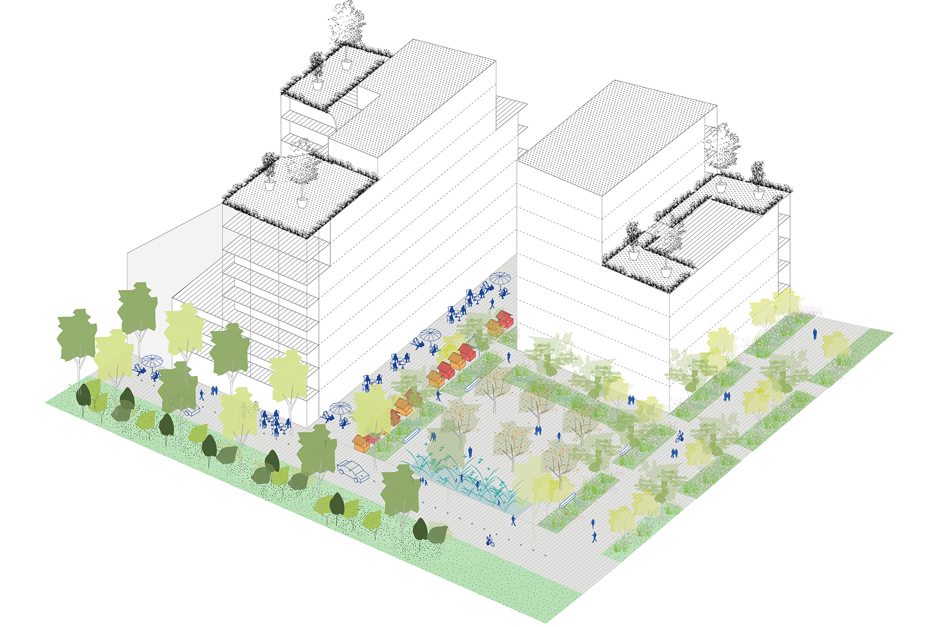Le quartier du Bac d’Asnières s’articule autour d’une grande poche de nature : le parc des Impressionnistes, qui se trouve en position de promontoire.
